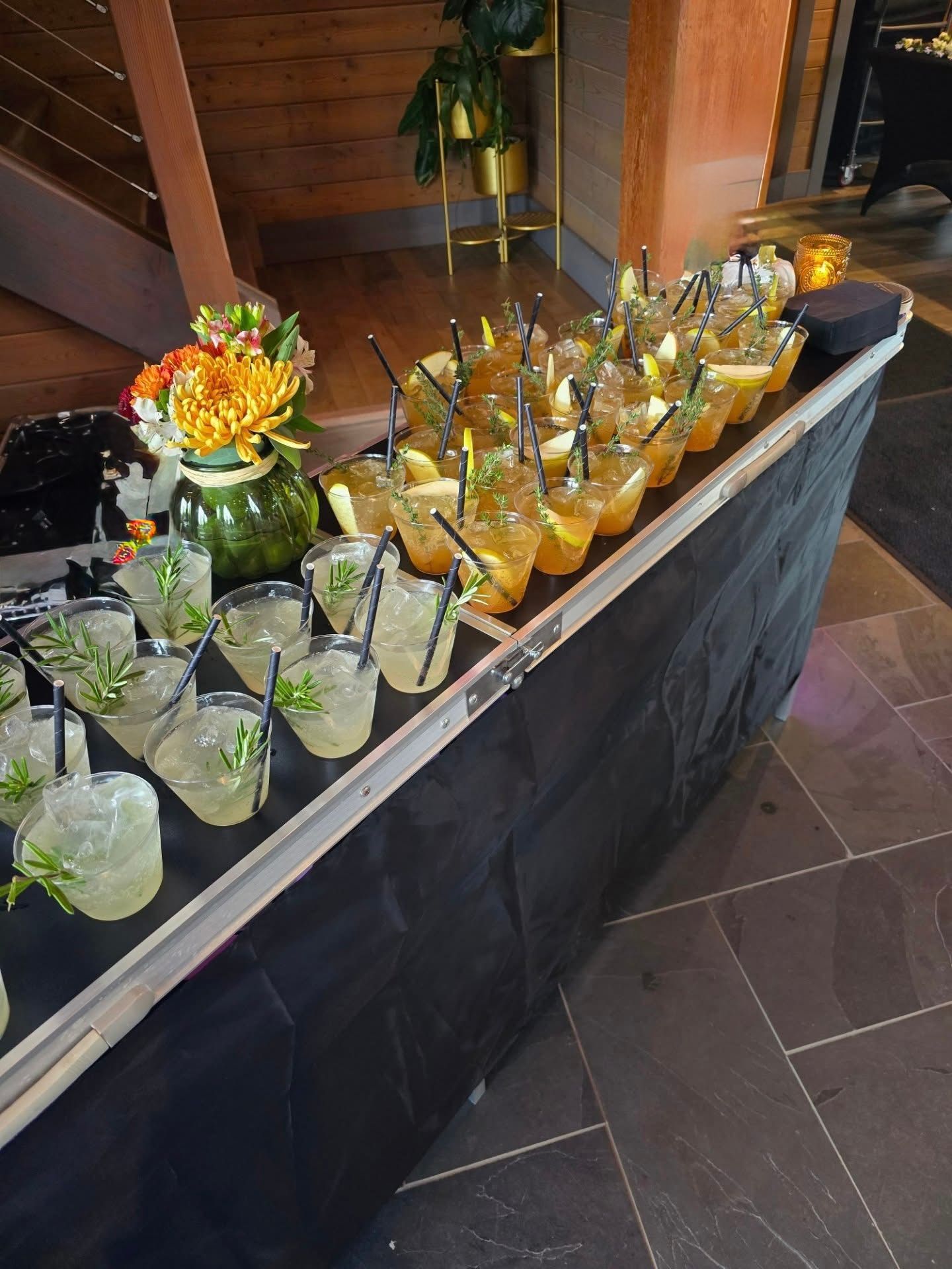 The bar is delivered and assembled at your venue with all ingredients, glassware, and branding materials included. In Midland corporate events, the setup typically includes a portable bar station, menu boards, and signage that incorporates your company name or event theme. Bartenders are trained to work efficiently in high-traffic environments and to handle large guest volumes without bottlenecking service during networking hours.