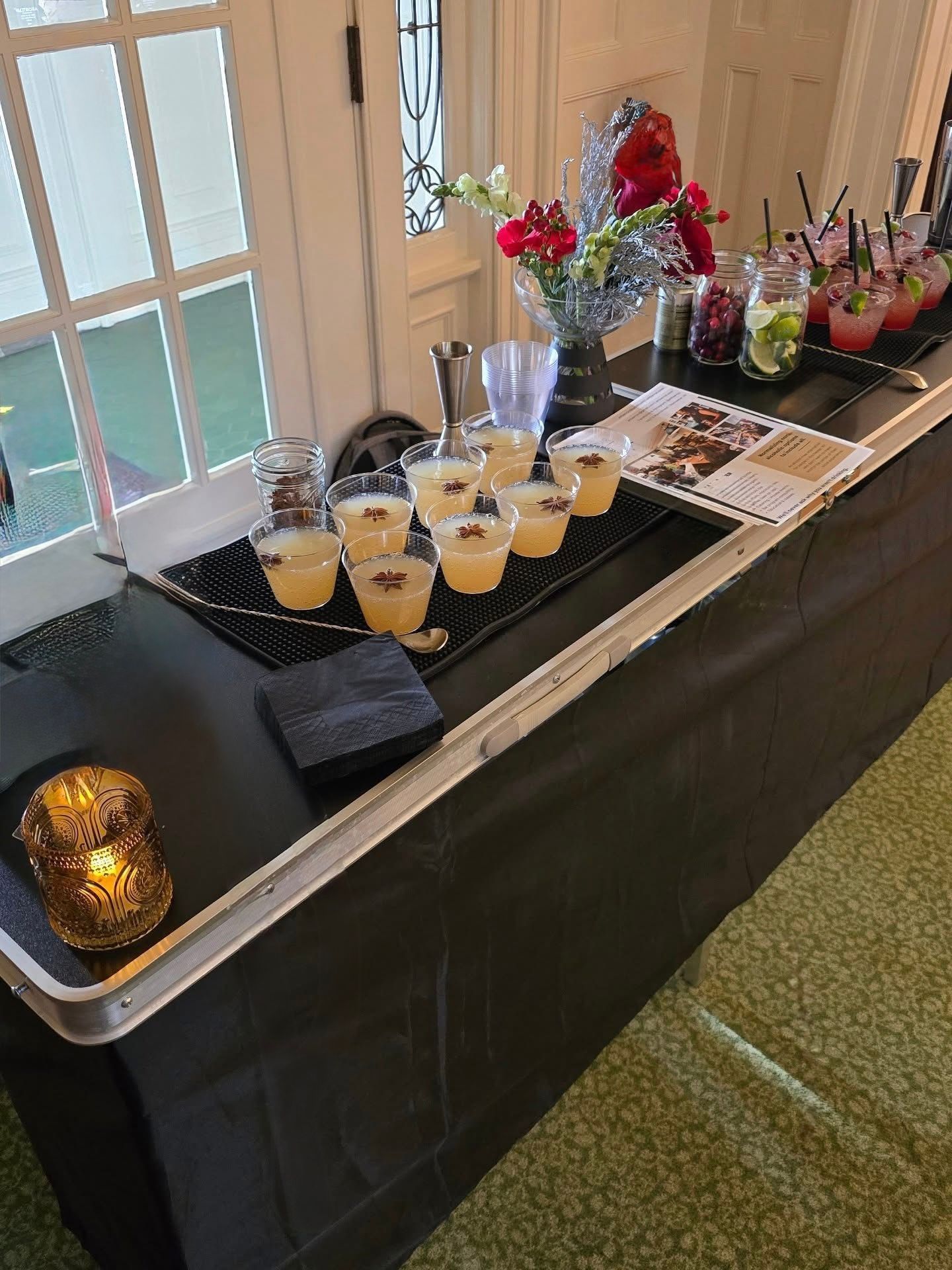After the bar opens, your guests see a curated menu with three to five drinks that feel upscale and thoughtful. The drinks are made to order, garnished individually, and served quickly enough to keep lines moving. Attendees notice the quality and often comment on the fact that the non-alcoholic options are just as considered as anything else at the event.